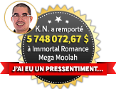 C'est avec fierté que K.N. a rejoint la liste des multimillionnaires de Casino Rewards après avoir gagné un montant impressionnant de 5 748 072,67 $ à Immortal Romance Mega Moolah au Casino Grand Mondial le 24 septembre 2022 !